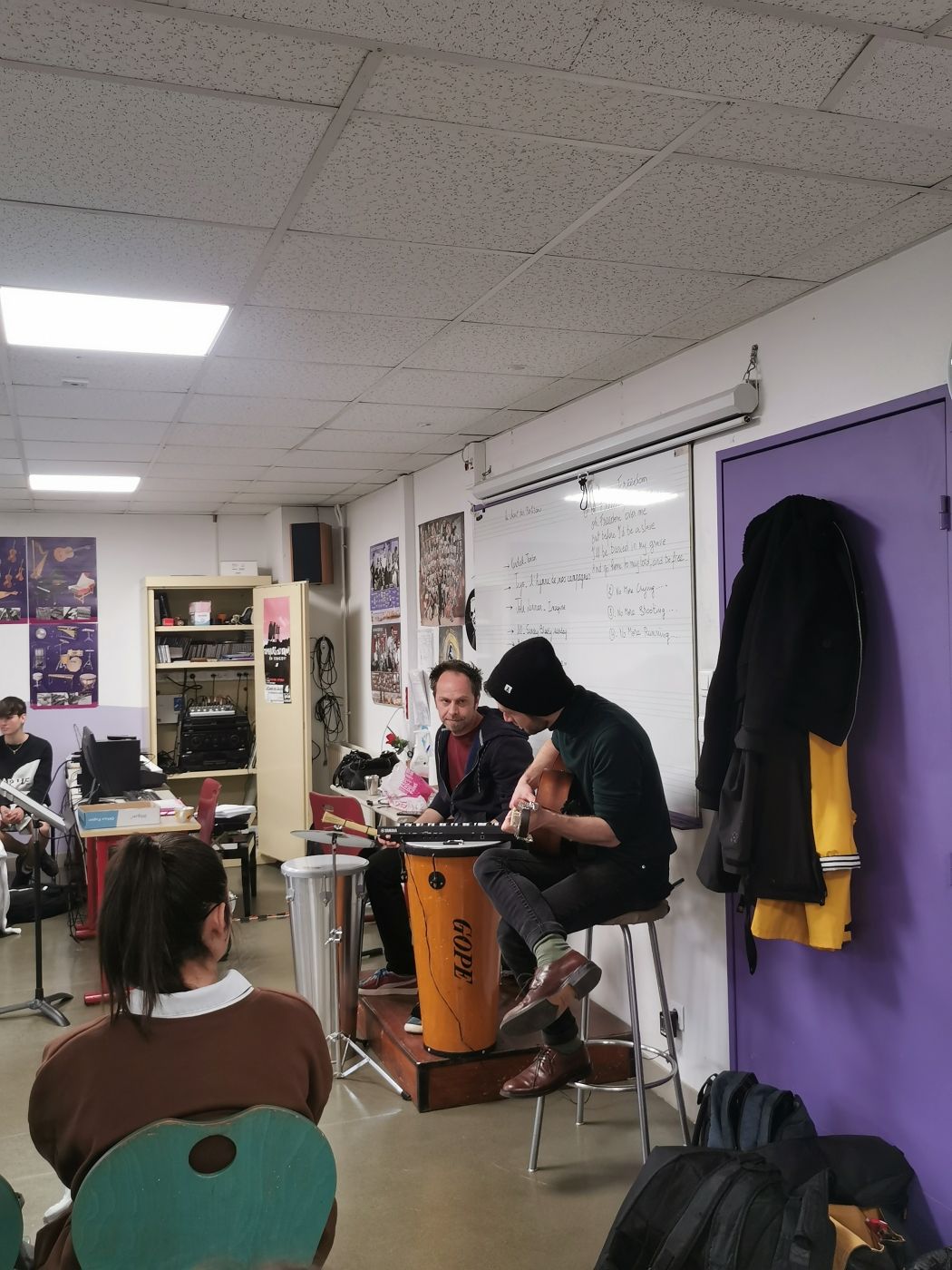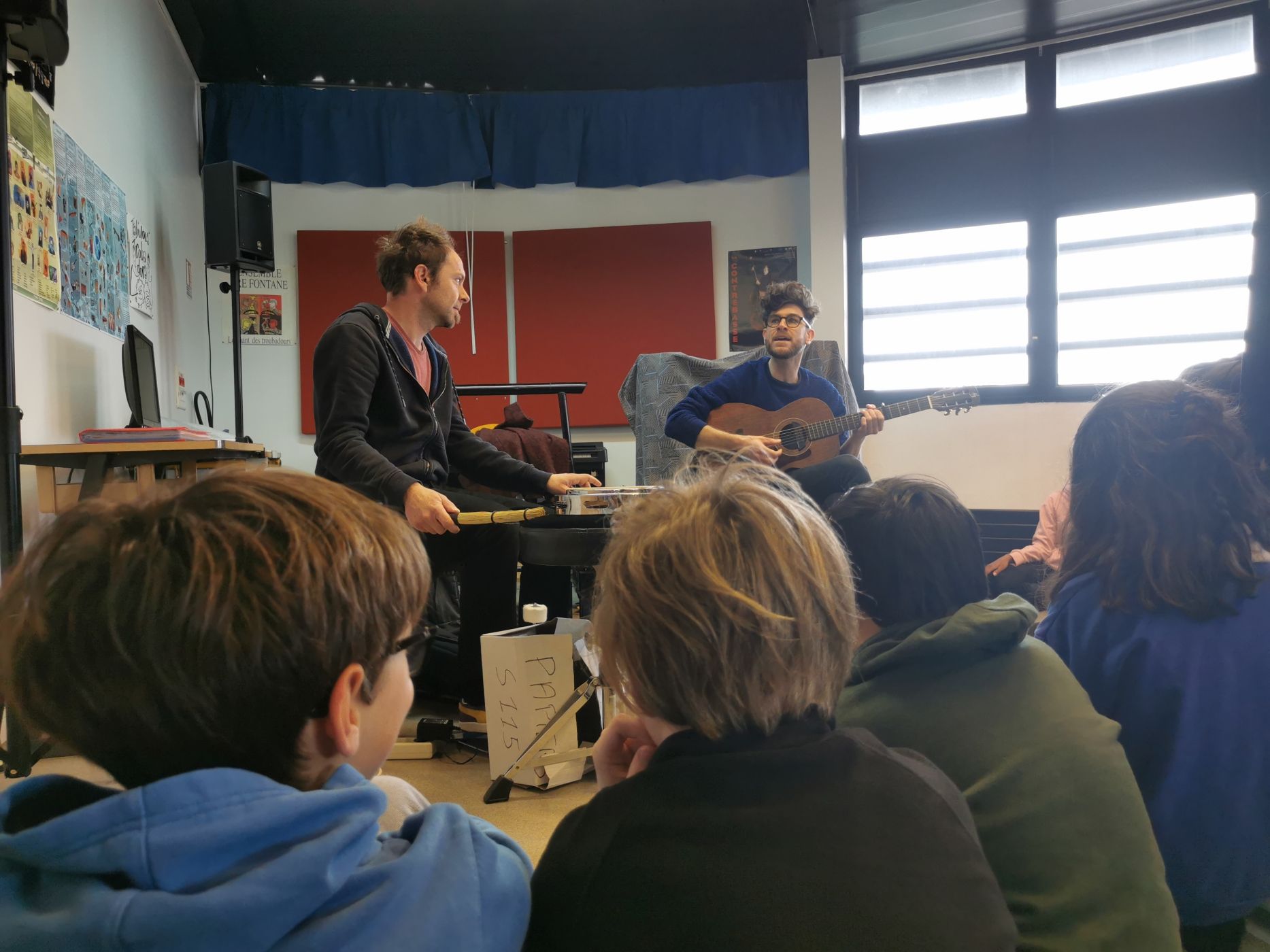 Accompagnées par des artistes musiciens, nous continuons de déambuler à travers le territoire pour aller à la rencontre de collégiens qui participeront à des ateliers de créations…